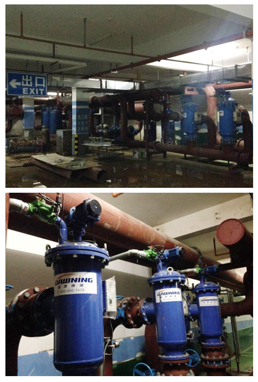 南湖名都項目中,作為綠色(sè)節能示範工程的水源熱泵係統,在運行過程中產生的固體雜質顆粒,需要進行過濾處理以保護整個係統平穩運行。